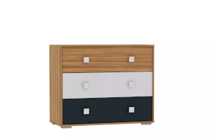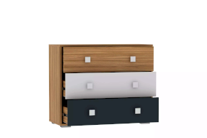 Ручки лаконичного дизайна белого цвета придают комоду современный вид. Три больших выдвижных ящика со встроенной перегородкой гарантируют достаточно места для хранения вещей, а благодаря регулируемым опорам комоду не страшны никакие неровности. Объедините комод со шкафом из одноименной серии, чтобы создать особенно гармоничную атмосферу!