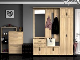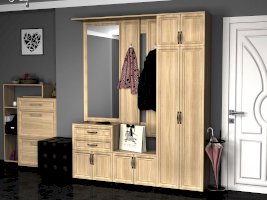 Удобный и многофункциональный модуль для прихожей, сочетающий в себе тумбу с 2-мя выдвижными ящиками и большое зеркало.