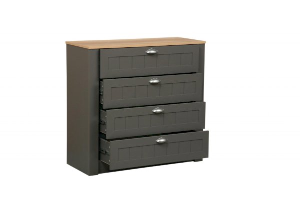 Комод совершенно необходим и в спальне, и в детской, и в гостевой – для того, чтобы хранить в нем постельное белье и одежду, которую мы привыкли складывать. Однако и в других комнатах – гостиной, столовой, прихожей он тоже найдет себе место. Главное, продумать, чем его наполнить, а в любой семье с этим нет никаких проблем! В модуле представлены четыре выдвижных ящика. Они большие и просторные – во всю ширину комода, а это целых 948 мм, почти метр!