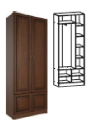 Наполнение шкафа: полки + штанга, в антресоли - полки