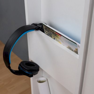 Нередко хобби ребенка перерастает в нечто большее и становится не только способом реализовать свои творческие способности, но и делом всей жизни. Уникальный выдвижной шкаф для хобби ЛОЙС 85 с двумя зонами хранения: внутренняя закрытая зона и фасадная часть с карманами. Внутри шкафа полки с ограничителями и ниша с крючками, где можно хранить форму для тренировок, мячи, ролики, наборы для творчества и другие аксессуары для хобби. Зона хранения на самом фасаде включает в себя: карман для высоких бумаг и ватманов, ручку, выполненную виде полочки, и два крючка, на которые удобно повесить заработанные медали, скакалки, элементы декора. Выдвижная система ЛОЙС 85 на роликах оснащена широкими шариковыми направляющими полного выдвижения. С ЛОЙС 85 в комнате появится место для хранения вещей тесно связанных с увлечениями детей. Модуль обязательно крепить к стене!