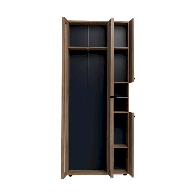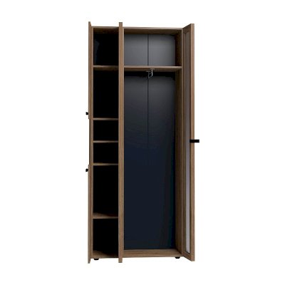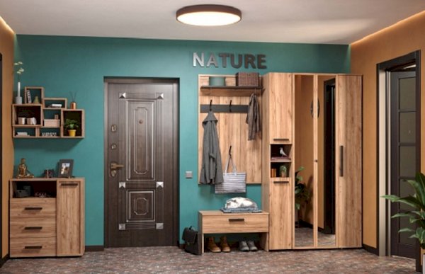 Nature 87 Шкаф для одежды и белья создаст все необходимые условия для хранения в прихожей верхней одежды и аксессуаров. В этом шкафу есть все необходимое для размещения верхней одежды: выдвижная штанга, верхняя полка, ряд регулируемых полок. Большая секция оснащена выдвижной штангой для развешивания пальто и курток на плечиках. Выдвижная штанга выдерживает вес до 10 кг. Один из зеркальных фасадов Контур открывается за ручку-петлю из черной экокожи, второй фасад - за раму. По желанию к модулю можно докупить Nature 94 Дополнительный модуль для Nature 87, который крепится под полку открытой ниши.