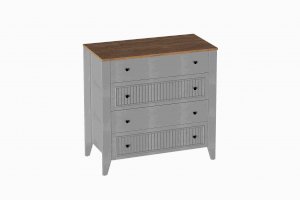 Комод с 4 ящиками Валенсия выполнен из ЛДСП в комбинации Дуб натуральный светлый/Персидский жемчуг.