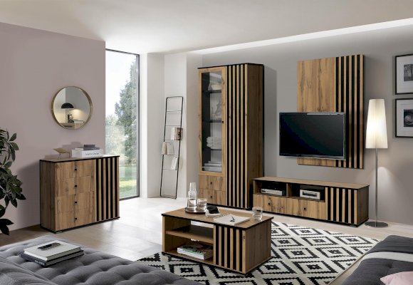 Торцы сверху и снизу покрыты черной пленкой и удачно гармонируют с реечным фасадом. Черные рамки подчеркивают границы шкафа. Внутренние полки и дверцы изнутри также выполнены в черном цвете. Таким образом достигается постоянный контраст, что выглядит очень эффектно!