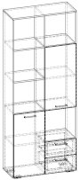 Применение задней стенки из ЛДСП (в ячейках с ящиками и фасадами) позволяет использовать данный стеллаж для зонирования пространства (чтобы предотвратить опрокидывание, необходимо обеспечить крепление стеллажа к стене).
