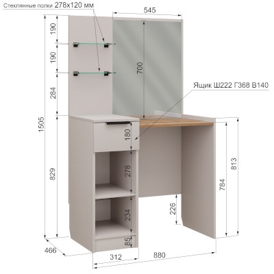 Материал: ЛДСП, зеркало, стекло