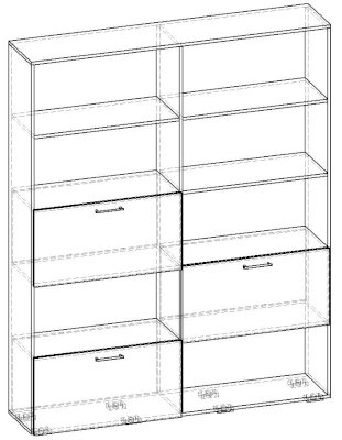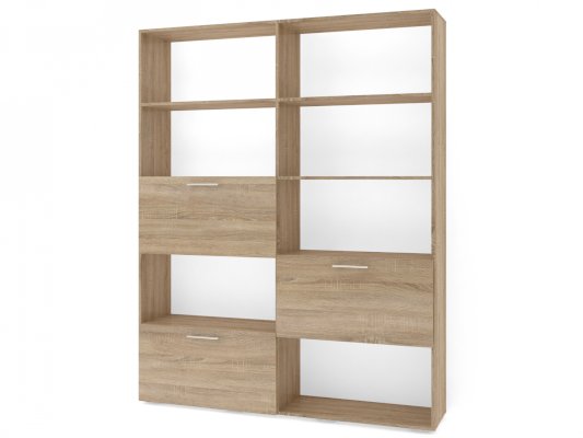 Применение задней стенки из ЛДСП (в ячейках с фасадами) позволяет использовать данный стеллаж для зонирования пространства (чтобы предотвратить опрокидывание, необходимо обеспечить крепление стеллажа к стене).