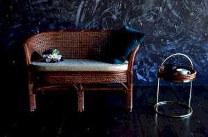 Двухместный диван из ротанга с подушкой.