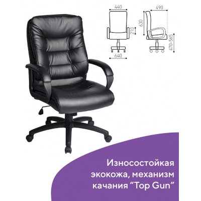 Надежный механизм качания "Top Gun" гарантирует хорошую поддержку спины и поясницы за счет возможности свободного качания с фиксацией в одном рабочем положении и регулировку угла наклона под вес сидящего.