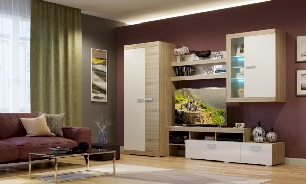 Дуб Сонома/Белый глянец