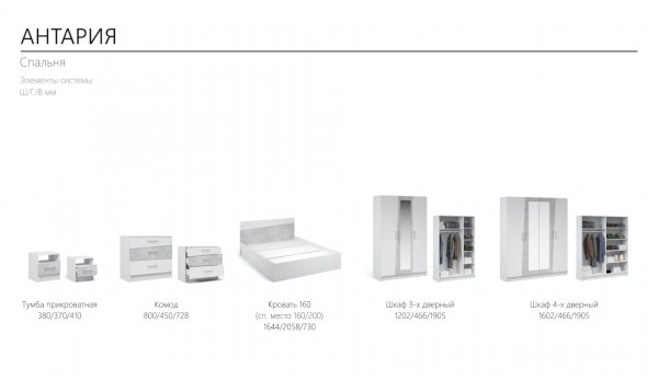 Модульная спальня Антария Белый/Ателье (Империал)