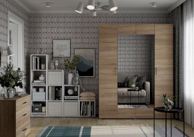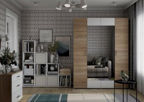 Шкаф 4-створчатый 1800 Комбинированный (2 створки с цветом фасада Венге, Белый или Сонома/2 створки Бетон или Крафт золото)