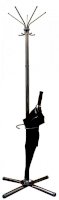 Крючки и основание вешалки напольной выполнены из  серого металлика. Идеально вписывается в интерьер современного офиса. Вешалка поставляется в картонной таре, в разобранном виде, снабжена подставкой и держателем для зонтов.